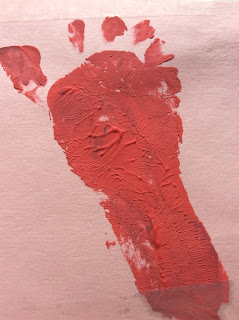 Kokeilimme yhtä lisätapaa hahmottaa jalkaterää tänä keväänä, eli ulkopuolisen kuvan ja muodon yhdistämistä omaan jalkaterään. Aluksi meillä oli jalkaterän muotoisia kumipaloja lattialla eri asennoissa. Pienten lasten haaste oli asettaa omat jalkansa oikein näiden ns. jalkapalojen päälle. 2-3-vuotiaat löysivät melko helposti oman jalan ja muodon yhteyden, vaikka heilläkin meni monta kertaa ennen kuin he alkoivat hahmottaa, että oma jalka on oikein jalkamuotopalan päällä, eli oma isovarvas on muotopalan isovarpaan kohdalla. Oikeastaan heidän piti hahmottaa onko kyseessä oikea vai vasen jalka, vaikka käsitteiden oikea ja vasen hahmottaminen ei olekaan tavoite näin nuorten lasten kohdalla.